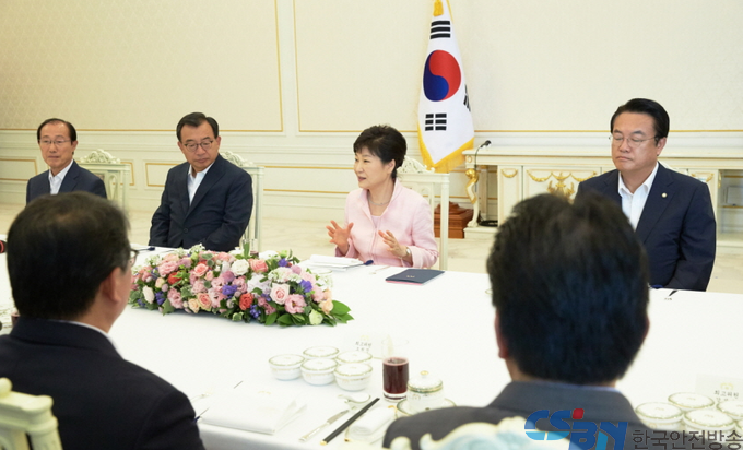 (한국안전방송) 박근혜 대통령은 8월 11일 새누리당 신임 지도부를 청와대로 초청해 오찬을 함께 했다.
