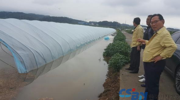 차 군수는 피해 규모 등 침수피해상황을 확인한 뒤 관계자들에게 “배수상태 등을 면밀히 검토하고 대책을 수립해 이 같은 피해가 또다시 발생하지 않도록 조치하고, 즉각 복구를 실시해줄 것”을 주문하고 실의에 빠진 피해 농가를 위로했다.