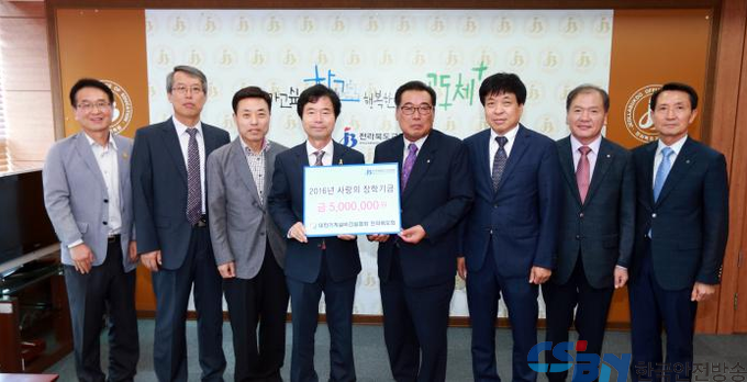 (한국안전방송) 대한기계설비건설협회 전라북도회는 28일 오전 전라북도교육청을 방문, 김승환 교육감에게 5백만원의 장학금을 전달했다고 밝혔다.