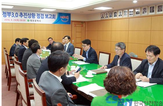 (한국안전방송) 대전광역시는 29일(목) 시청 다목적실에서 송석두 행정부시장 주재로 실·국장 간부공무원이 참석한 가운데 2016년도 정부3.0 추진상황 점검 보고회를 개최했다고 밝혔다.