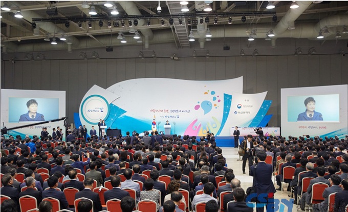 (한국안전방송) 박근혜 대통령은 27일 부산시 벡스코에서 개최된 「제4회 지방자치의 날 및 지방자치 박람회」기념행사에 참석하여 그간 지방자치단체의 성과를 치하하고 지방자치단체 관계자들을 격려하였으며, 지방자치 박람회장을 찾아 ‘지방자치 정책전시관’, ‘주민자치센터 우수사례관’ 등을 살펴보았다.
