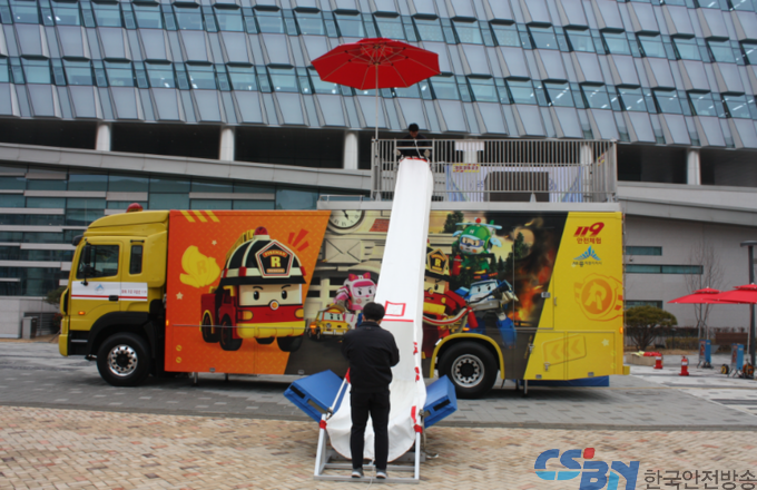 (한국안전방송) 세종소방본부가 12일 오후 시청 앞 광장에서 이동안전체험차량 시연회를 가졌다고 밝혔다.