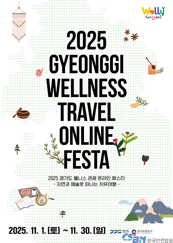 경기도와 경기관광공사가 11월 1일부터 30일까지 한 달간 도내 웰니스 관광지 9곳에서 최대 6만 원의 할인 혜택을 받을 수 있는 ‘2025 경기도 웰니스 관광 온라인 페스타’를 진행한다.