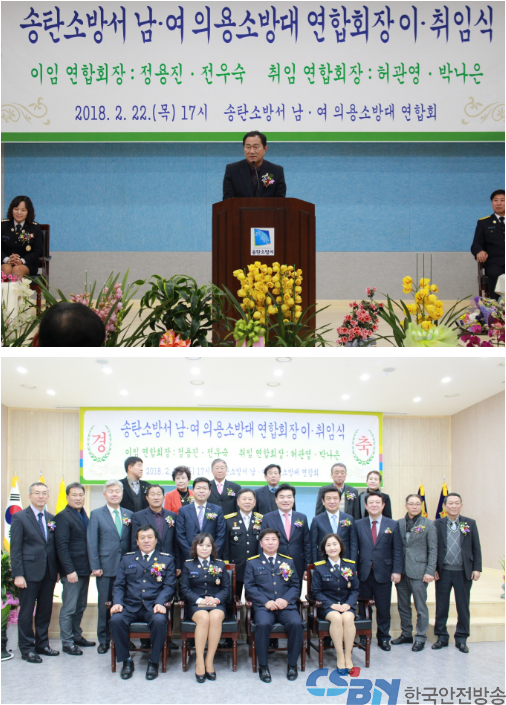 (한국안전방송) 경기도의회 염동식(바른미래당 평택시3) 부의장은 지난 22일 송탄소방서에서 열린 남 여 의용소방대 연합회장 이 취임식에 참석하여 이임하는 정용진(남), 전우숙(여) 회장의 노고를 치하하고, 신임 허관영(남), 박나은(여) 회장의 취임을 축하했다.