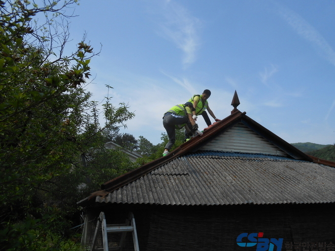 이번 지붕수리는 이달 초 강풍으로 노후화된 슬레이트 지붕이 파손된 저소득 독거어르신 및 장애인가구로 양동청년회와 의용소방대원들이 각각 한 가구씩 맡아 지붕수리 봉사활동을 진행하였다.
