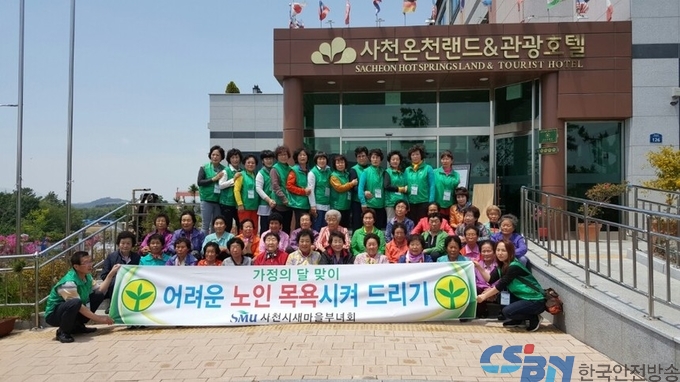(한국안전방송) 사천시새마을부녀회는 ‘5월 가정의 달’을 맞아 16일 용현면 소재 사천온천랜드에서 관내 70세 이상 생활이 어려운 노인 28명을 모시고 ‘목욕시켜드리기 및 봄 나들이 행사’를 가졌다고 밝혔다.