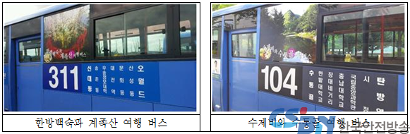 대전시에 따르면, 지난 3월 말부터‘보리밥과 보문산 여행 버스’등 6대 명산 코스 9개 노선, 계절별 코스 11개 노선 버스 외부에 알림 포스터를 부착하고 운행한 이후 4월 승객 현황을 분석한 결과, 전 달에 비해 전체 노선의 승객은 줄어든 반면 시내버스 여행 노선은 평균 1.6% 증가한 것으로 나타났다.
