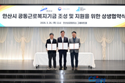 대ㆍ중소기대업 복지격차 해소… 안산형 상생 노동복지 모델 본격 가동 안산시(시장 이민근)는 지난 26일 안산상공회의소 그레이트홀에서 경기지방고용노동청 안산지청, 안산시 공동근로복지기금 1호 법인과 함께 ‘안산시 공동근로복지기금 조성 및 지원을 위한 상생협약’을 체결했다고 27일 밝혔다. 이번 협약은 지역 중소기업과 노동자가 함께 참여하는 공동근로복지기금 조성을 통해 대ㆍ중소기업 간 복지 격차를 완화하고, 상생과 연대의 노동환경을 조성하기 위해 마련됐다. 앞서 시는 지난해 7월 ‘안산시 공동근로복지기금 지원 조례’를 제정하고, 기초자치단체 최초로 공동근로복지기금 지원사업을 시행했다. 이는 지방정부와 중앙정부, 기금법인이 함께하는 3자 협력 모델을 구축했다는 점에서 의미가 있다. 이날 협약식에는 이민근 안산시장을 비롯해 양승철 경기지방고용노동청 안산지청장과 장현준 기금법인 대표, 참여기업 관계자 등 100여 명이 참석한 가운데 공동근로복지기금 사업 출범을 기념하고 상생 협력 의지를 다졌다. 협약에 따라 안산시는 공동근로복지기금 조성 및 운영을 위한 행정ㆍ재정적 지원을 담당하고, 경기지방고용노동청 안산지청은 ▲정책 반영과 제도 개선 ▲참여기업 확대 및 우수사례 확